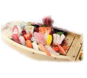 12 pcs sushi assorted and 18 pcs sashimi assorted w. one California roll and one tuna roll
