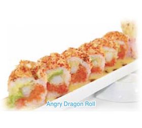Spicy creabmeat, avocado and w. shrimp tempura inside topped with salmon, white tuna crunch and tobiko.