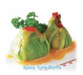 Spicy tuna, crunch inside; yellowtail, tuna, jalapeño with spicy sauce on top.